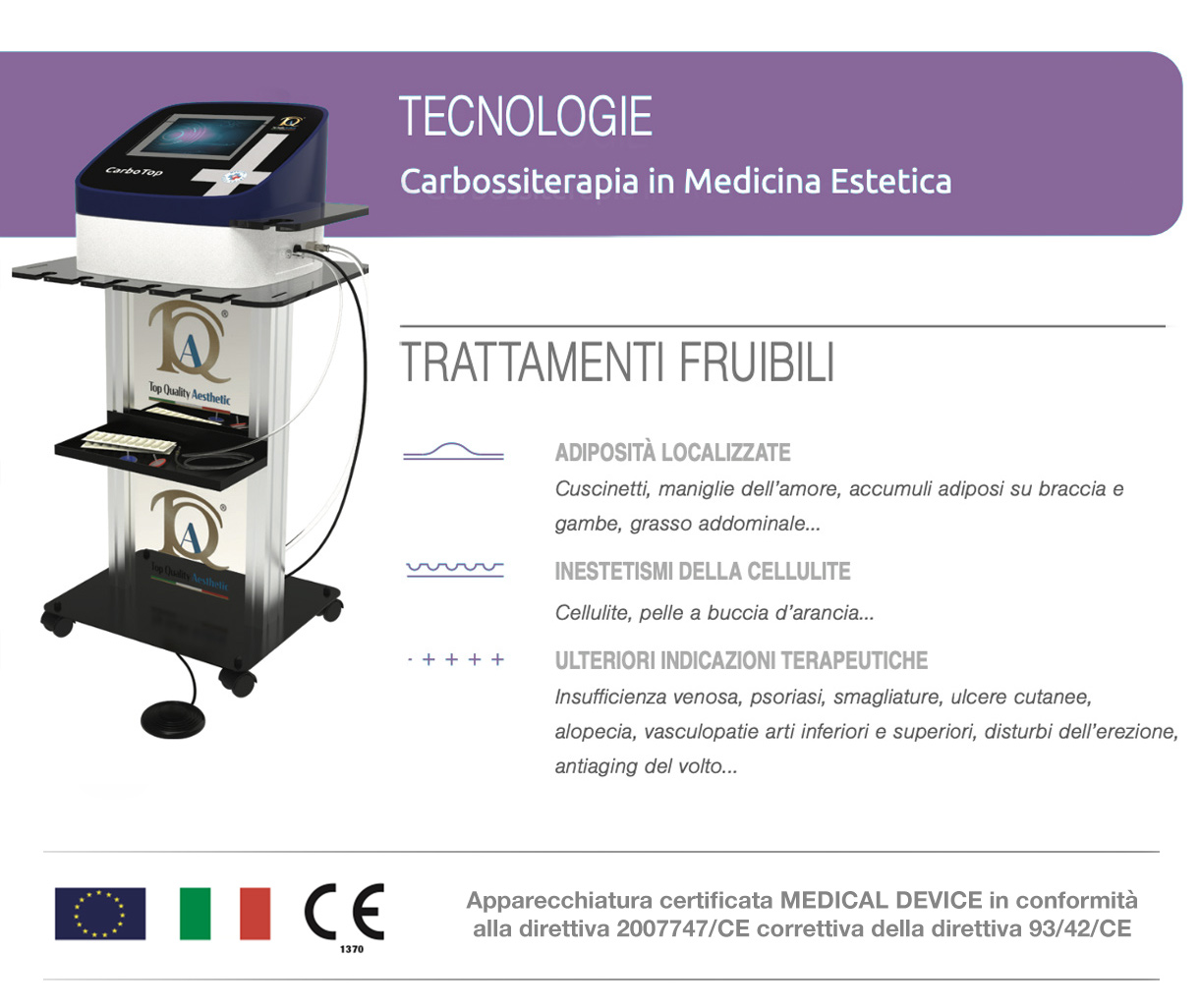 Al Poliambulatorio Minerva utilizziamo Carbo Top, un dispositivo all’avanguardia prodotto da Top Quality Group, pensato per offrire trattamenti di carbossiterapia efficaci, sicuri e mini-invasivi.